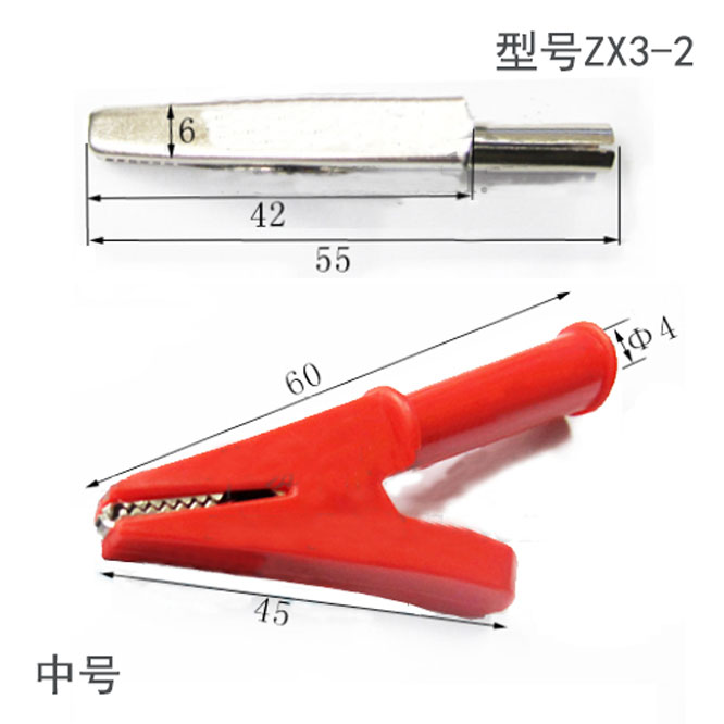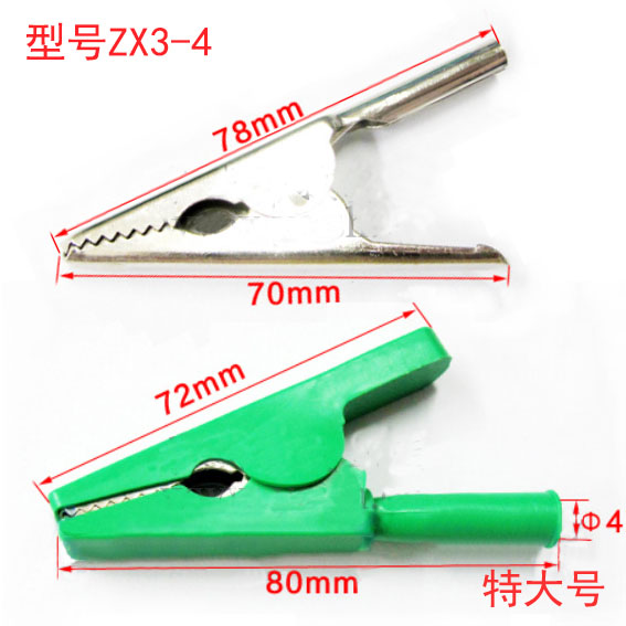 鱷魚夾接線說明: 鱷魚夾有3種接線方式:插拔式、自焊式、注塑型 插拔式:鱷魚夾測試夾子尾部絕緣手柄 中,有一側(cè)為直徑4mm的接插孔。接孔適配各規(guī)格的測試線插頭。 自焊式:(含壓接式)鱷魚夾測試夾子尾部絕緣手柄中,有一側(cè)(或兩側(cè))留有焊線或壓線的位置,用戶可根據(jù)需要自己焊線或壓線上去。 注塑型:鱷魚夾測試夾尾部絕緣手柄是與測試線注塑成一體的。 鱷魚夾型式說明: 我們公司專業(yè)生產(chǎn)各式各樣的電測量專用測試夾,俗稱:鱷魚夾(含:專用夾 | 全封閉夾 | 半封閉夾 | 全封閉海豚夾 | 護套夾 | 自焊夾 | 迷你夾 | 伸縮夾 | 雙柄夾等)專門用于電力儀器儀表及現(xiàn)場測試使用, 按不同用途精選0.3~1.0mm厚度的紫銅 、黃銅、錳銅、磷青銅、不銹鋼薄板、冷軋薄板冷壓而成,并經(jīng)過不同方式的表面處理方法(鍍鎳、鍍錫、鍍銅、酸洗、陽極氧化等),具有強度高、導(dǎo)電性能好, 是按國家相關(guān)技術(shù)標準生產(chǎn)的工業(yè)用品,決非市面上一般商用線夾子可比,且每只夾子均經(jīng)過耐壓材料處理,因此選購時請一定注意自已的用途 ,萬勿高配低用,造成不必要的浪費。