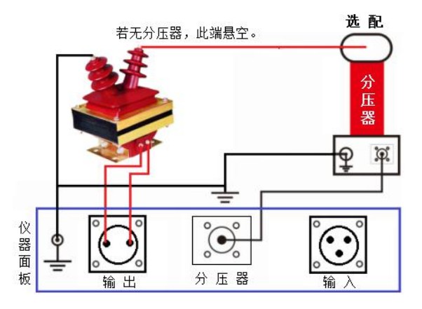 1、 由于分壓器為選配件,用戶如沒購買分壓器,做感應(yīng)耐壓試驗時,不 接分壓器的相關(guān)連接線即可,同時將設(shè)置菜單中的檢測電壓選擇低壓 側(cè)。