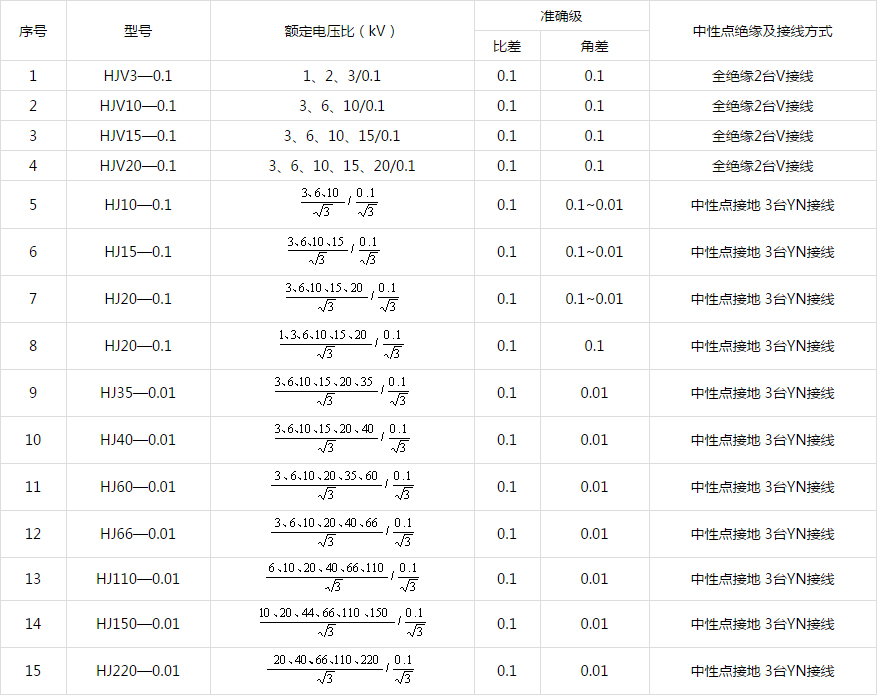 表1:變壓器試驗(yàn)常用電壓互感器型號(hào)規(guī)格(全部在二次切換量程)