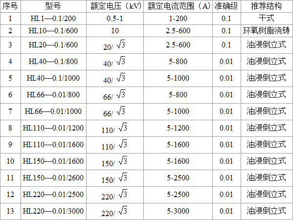 典型產(chǎn)品的型號(hào)參數(shù)列于表2之中。所有產(chǎn)品可以選擇在一次繞組抽頭,也可以選擇一、二次繞組均有抽頭的量程變換方式,選擇后者時(shí),0.1-0.2級(jí)產(chǎn)品一次繞組分2段,0.01-0.05級(jí)產(chǎn)品一次繞組分3段。表中所列產(chǎn)品為常用典型產(chǎn)品,參數(shù)可按用戶需要變動(dòng)。