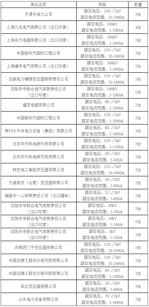 新型電流互感器國(guó)內(nèi)用戶見(jiàn)下表: