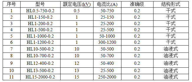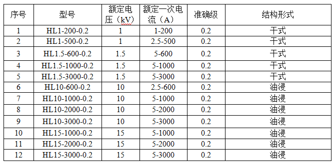 表2.2:變壓器試驗(yàn)常用電流互感器規(guī)格